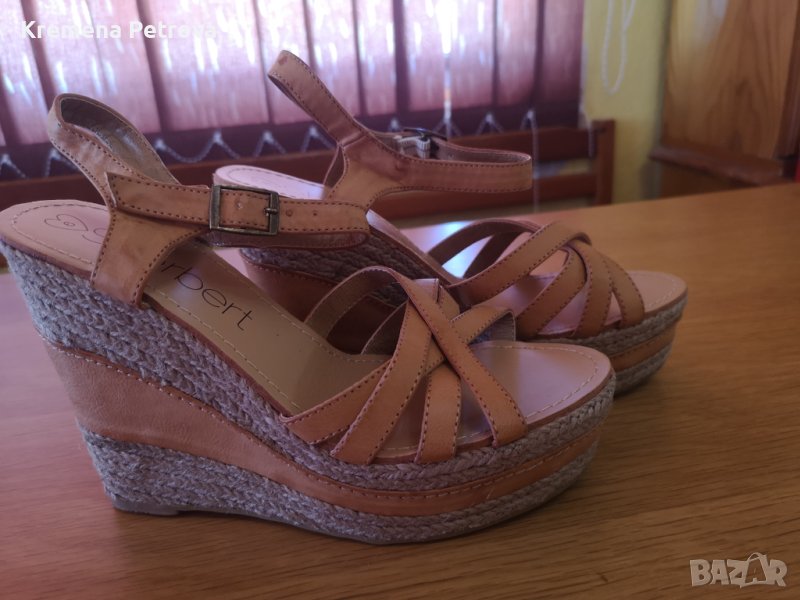 Нови кожени бежово кафяви сандали на платформа, 38 номер