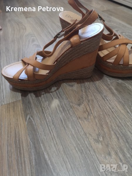 Доставка до СПИДИ АВТОМАТ 2,14€ Нови кожени бежово кафяви сандали на платформа, 38 номер