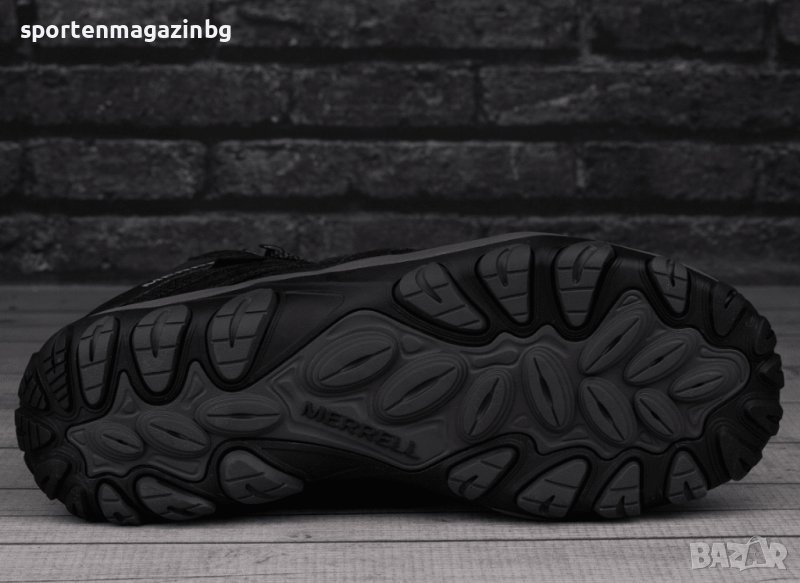 Gore-Tex мембрана - водоустойчива в същото време дишаща, осигурява перфектна защита в трудни атмосферни условия. Това са микроскопични пори, които са в хиляди пъти по малки от една капка вода, което позволява идеална дишаемост и не проникването на вода. Здрава горна част от естествена кожа и синтетични елементи с мрежести вложки, която е лесна за поддръжка. Подсилването в предната част около пръстите защитава най-чувствителната зона от удари и износвания. Допълнително подсилена задна част. Интегрирана с езика система за връзки за по-сигурно прилягане. Езикът в едно с обувката предпазва от навлизането на отломки. Текстилна кука в задната част за по лесно обуване. Лого Merrell върху езика и надпис странично. Нисък профил за по-голяма свобода при движение. Kinetic Fit™ BASE подвижна стелка с контур за гъвкава опора. Въздушната възглавница Merrell в петата абсорбира ударите и добавя стабилност. В междинната подметка е инжектирана EVA пяна предлагаща отлични омекотяващи свойства и анатомична опора за краката. Здрава гумена външна подметка Merrell AIR CUSHION с високо сцепление, която осигурява сцеплението, от което се нуждаете, за да останете здраво стъпили на земята.