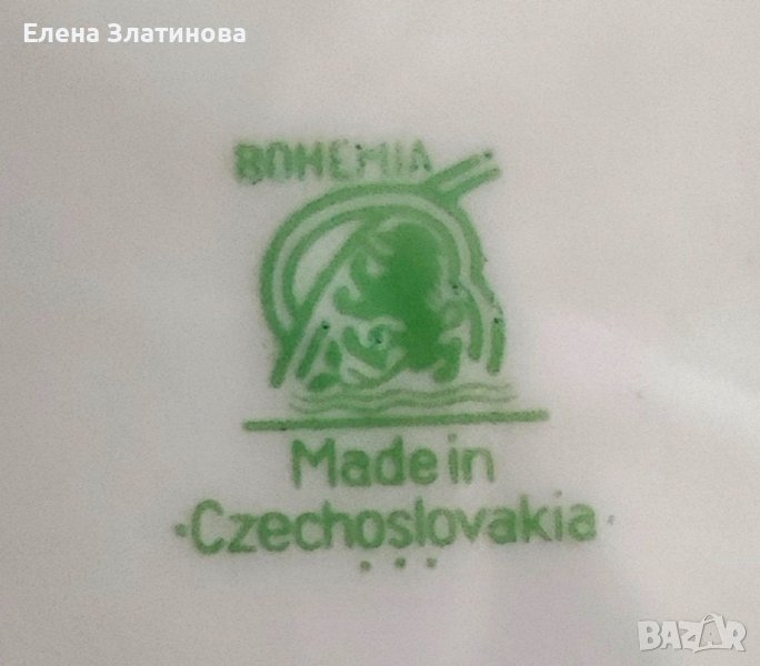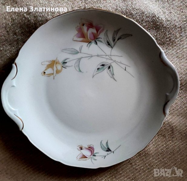12 чинии, диаметър 19 см, голяма чиния диаметър 29 см. Много нежен декор, със златен ръб