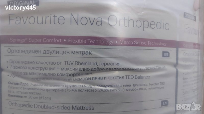 Чисто нов ,неразопакован матрак Favourite Nova Orthopedic 160/200см,сбъркахме размера,купен за 848лв,веднага може да ги видите в ТЕД ,както и пълните му характеристики - ТОП модел