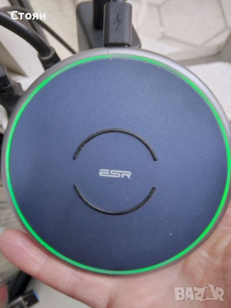 Безжично зареждане Qi с метална рамка и лед индикатор ESR Tidal, синьо