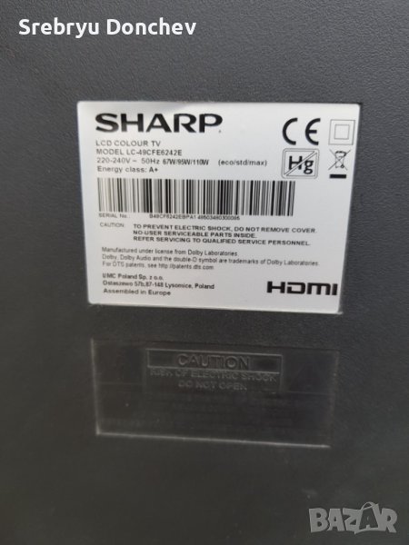Sharp LC-49CFE6242E със счупен екран-PCB:MP550D-DX2/T.MS6308.711/6870C-0532B/LC.48U12G001 → Обява 40669024