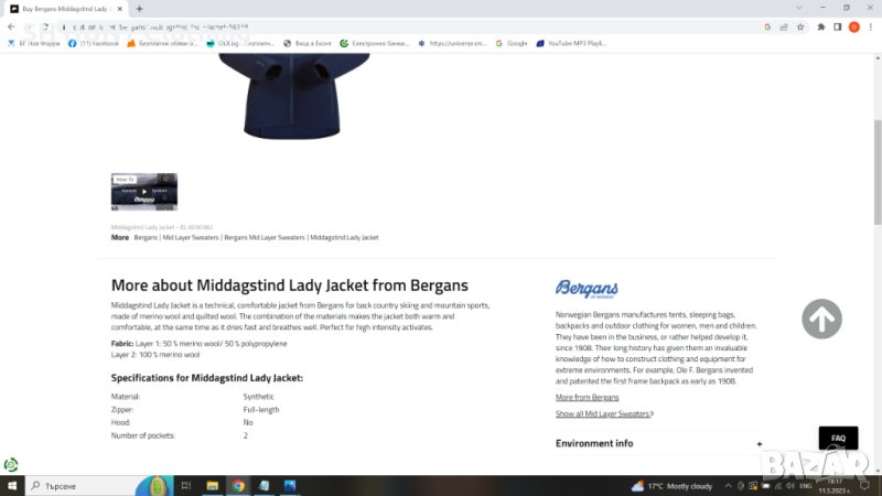 Марка: Bergans of NORWAY Middagstind Lady Jacket 100% Merino Wool - дамска горница 100% Мерино вълна L179-13 Размер: L - ширина под мишниците 53 см , разтяга се до 60 см , дължина 80 см заедно с яката , 72 см без яката.