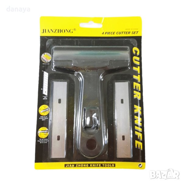Стъргалка за винетки, стикери, фолио и др. Сменящи се остриета (включени 2бр резервни в комплекта). Ножче за почистване на стъкла и гладки повърхности в комплект с 2 допълнителни резервни остриета. Мултифункционален ръчен инструмент за дома! С тази шпатула, тип стъргалка може да почиствате винетки, стикери от автомобили. Изпълнява функцията нож за сваляне на стара боя от стъкла, прозорци и плочки.