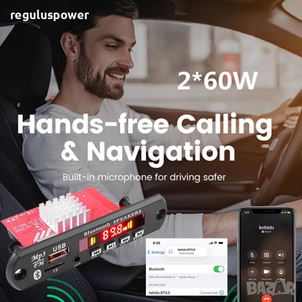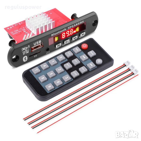 МП 3 плеър аудио модул за вграждане KEBIDU™ 2 x 60 W, с Bluetooth 5.0 с дистанционно и кабели за монтаж.