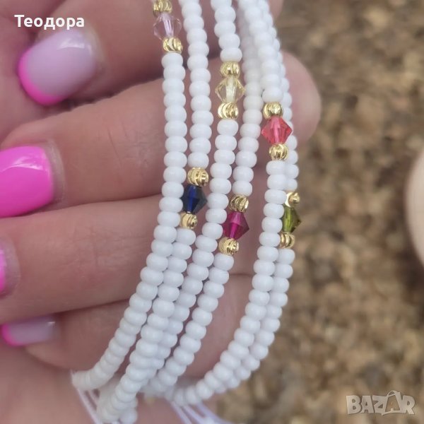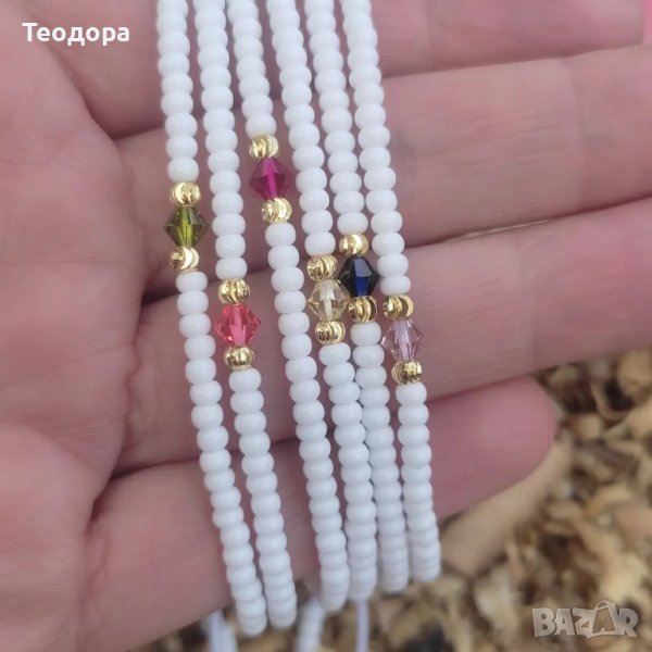 Ръчно изработена гривна от мъниста Miyuki, позлатени метални елементи 14К злато и кристалче Swarovski, изпращам грижливо опаковани!