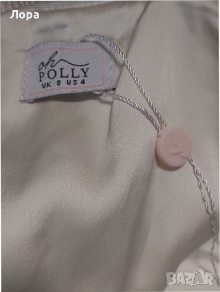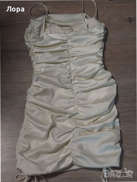 Дамска официална рокля. Цвят слонова кост. С подплата и сутиен. Размери от мишница до мишница 44 см. Талия 35 см. Ханш 46 см. Дължина на роклята 90 см. Закачането е с цип на гърба. Презрамките се регулират. Минимална стойност на поръчка-20 лв.