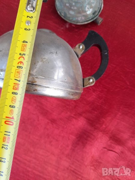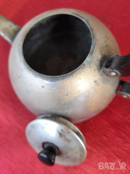 Стар чайник, състояние видно на снимките запазен но е за почистване, посребрен,маркиран,вместимост 0.500мл.течност .Забележка лепена дръжа за интериор и декор.
