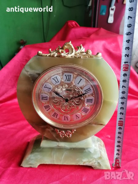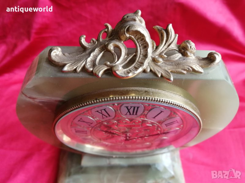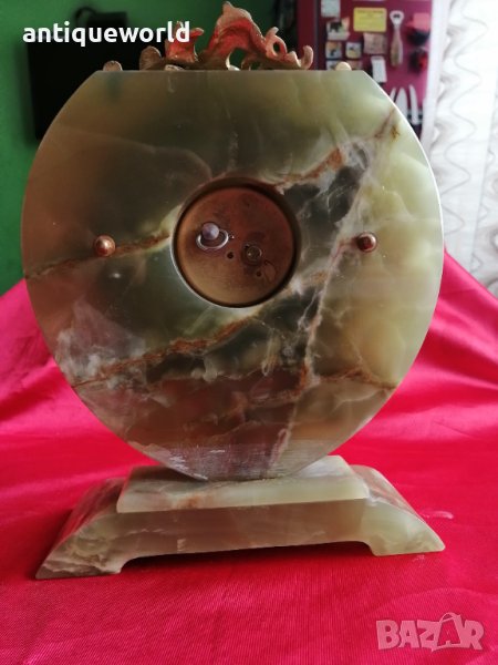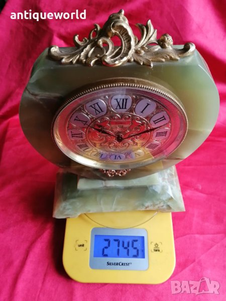 Много Красив Стар Масивен Седмичен Настолен Швейцарски Механичен Часовник ELSINOR .Тяло от Полускъпоценен Камък Зелен Оникс.Тегло Близо 3 Кг! Работи добре.