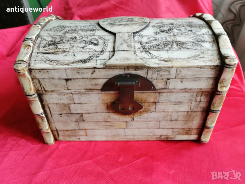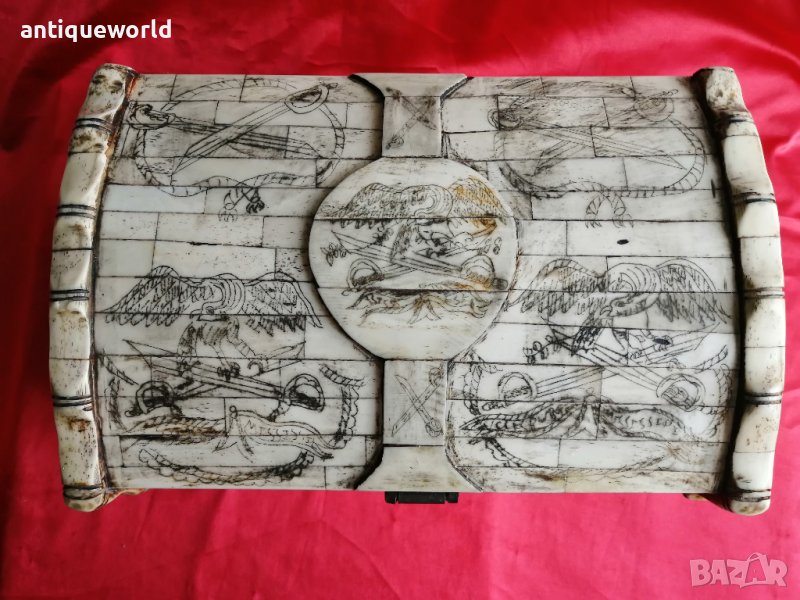 Уникат! Супер Рядка Масивна Много Красива Стара Голяма Кутия ,Сандък ,Ракла от КАМИЛСКА Кост. Тегло над 2 кг!