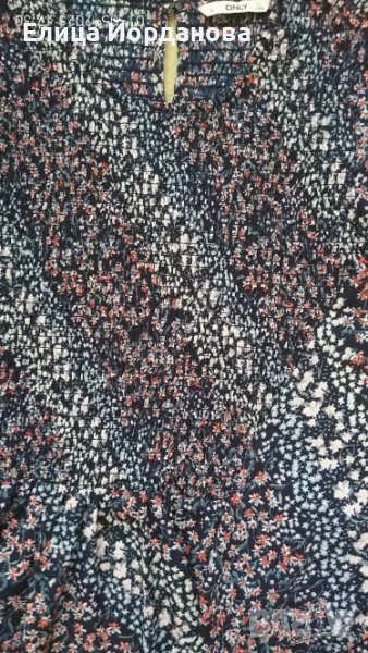 Only нова рокля с дълъг ръкав, подходяща за сезони пролет, лято и ранна есен. Цветен десен, много лека материя.До талията роклята е драпирана и има много добра разтегливост настрани, а от талията пада свободно надолу. Има интересен завършек на ръкавите. Размер L в неразтеглено състояние-гръдна обиколка 90-93 см. , талия 74-77 см.; ханш-99-102 см. Еластичността настрани увеличава см. при обличане.