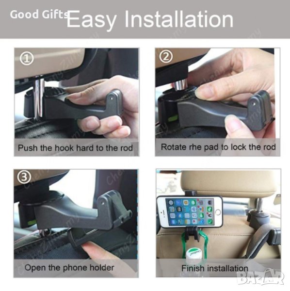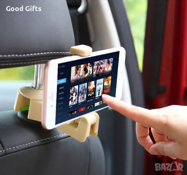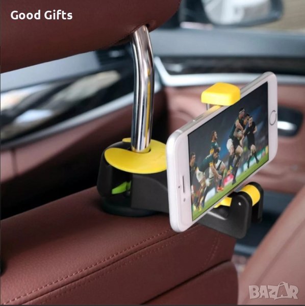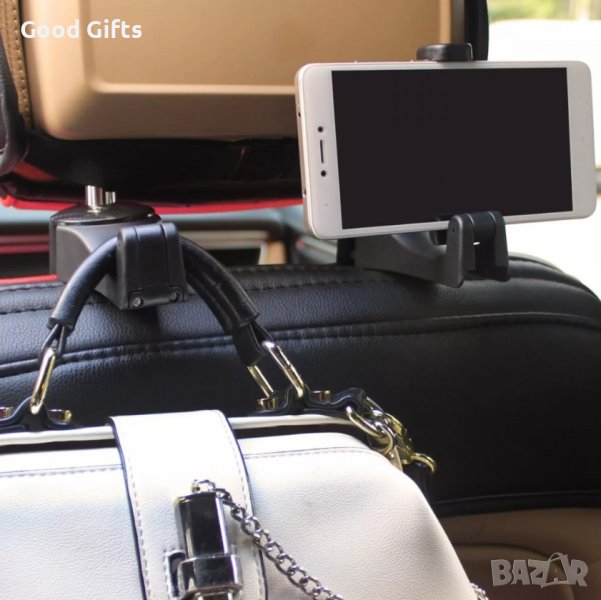 Иновативна поставка за телефон на задните седалки с кука за торби