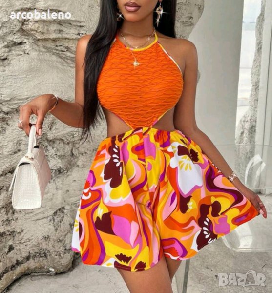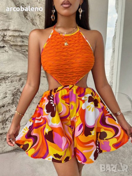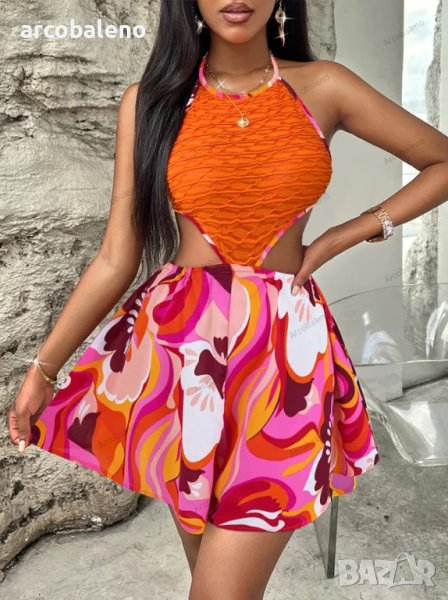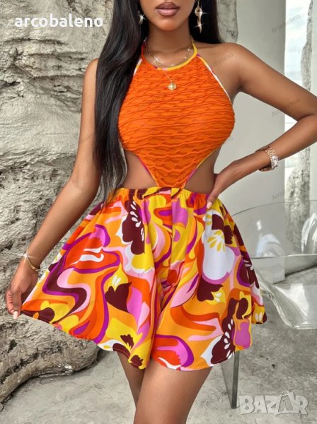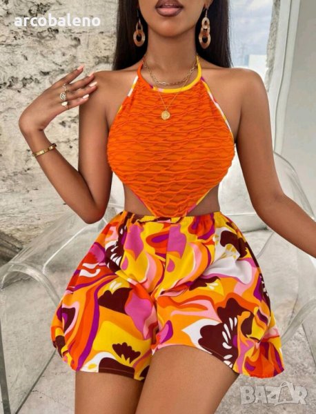 Дамски летен ярък гащеризон с халтер, 4цвята
