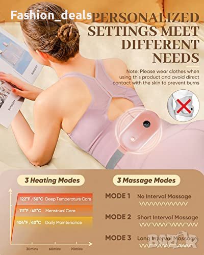 Бързо се нагрява в рамките на 3 секунди, за да подобри кръвообращението и да облекчи болките в стомаха, менструалните болки, болките в гърба, мускулните болки, коремните спазми и подуването на корема.