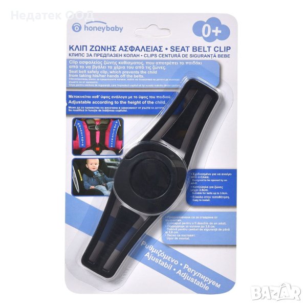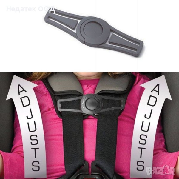 Предпазна щипка за предпазен колан, която не позволява на детето да извади ръцете си от коланите. Мести се на височина според ръста на детето. Предназначен за отваряне от възрастен. Регулирайте и нагласете желаната дължина, така че детето да седи удобно и безопасно. Подходящ за колани до 3.8см. Лесен за монтаж.