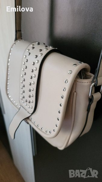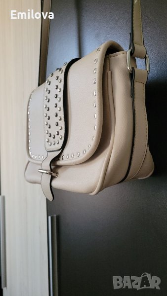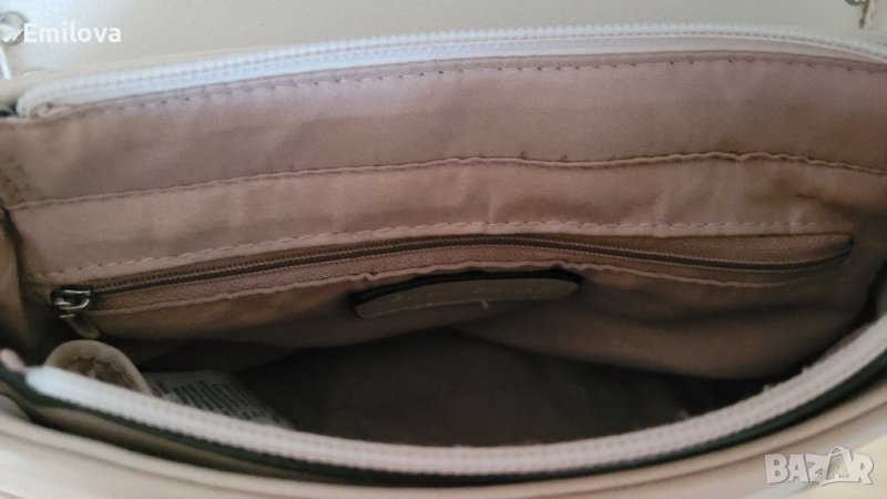 Като нова,носена е два пъти,няма никакви забележки и следи от употреба.Размери 23/17/10 см.Цвета е мръсно бяло или светло бежово.Дръжката се регулира на дължина.Може лично предаване в центъра.