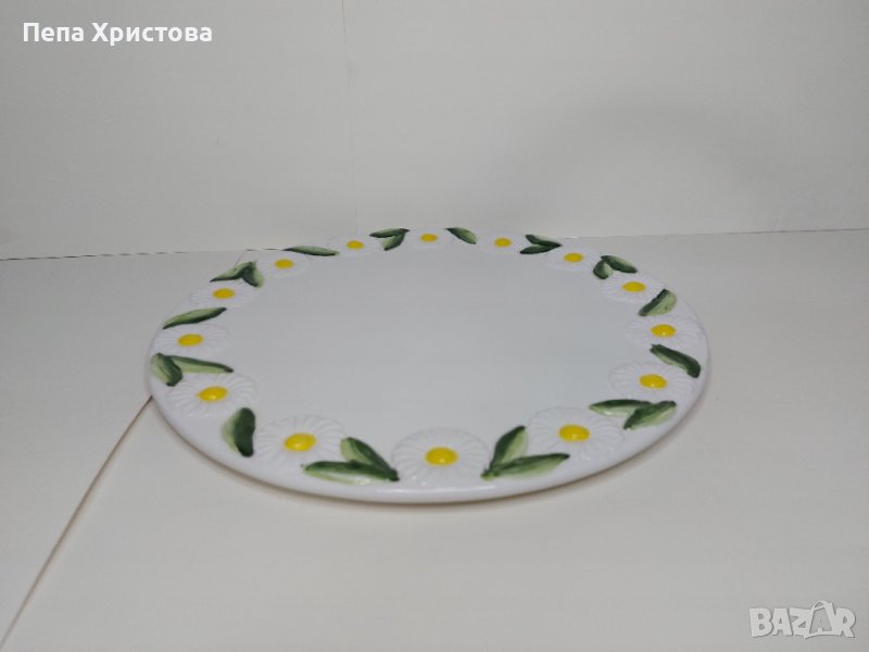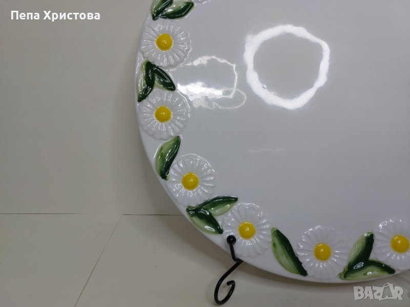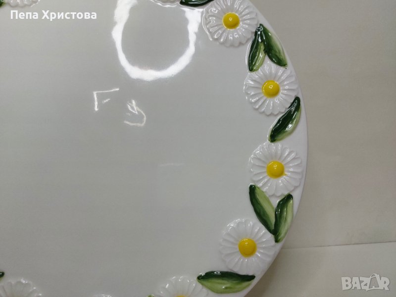 Плато за торта с маргаритки от италианска 3Д керамика Bassano.