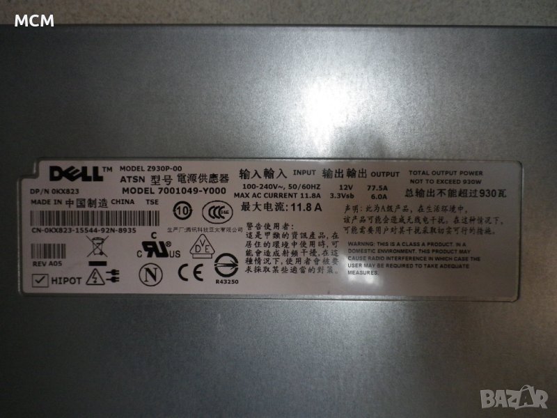Захранване Dell KX823 Z930P-00 930W → Обява 40685377