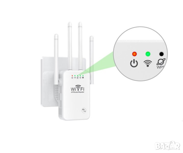 увеличава радиуса на действие на Wi-Fi сигнала. Безжичният WLAN Repeater разширява мрежата и увеличава скоростта. Усилва и стабилизира интернет сигнала до 100%. Включва се директно в контакта, удобен, незабележим, конфигурира се лесно с името и кода на Вашата мрежа. На корпуса на рипитъра е разположен и порт за включване на мрежов кабел, благодарение на което устройство може да играе ролята на стандартна точка за достъп.