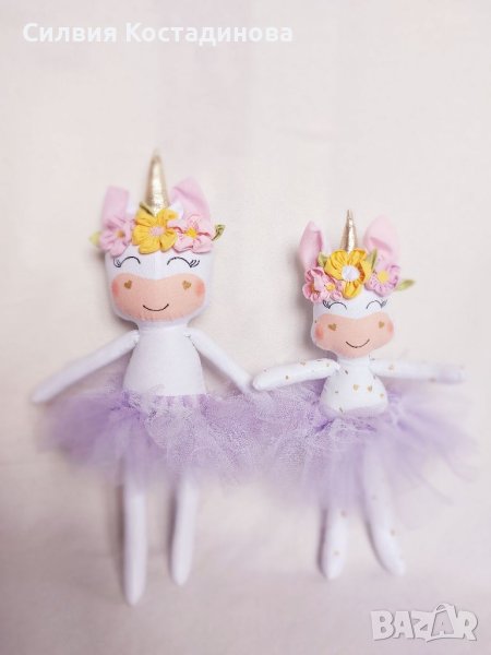 Играчките са в два размера: по-малък около 42см и голям около 52см. Цветята също са ръчна изработка, всичко е зашито, няма залепени елементи. Лицата са нарисувани с текстилни бои. В комплект към играчката, може да се добави и туту пола за детето.