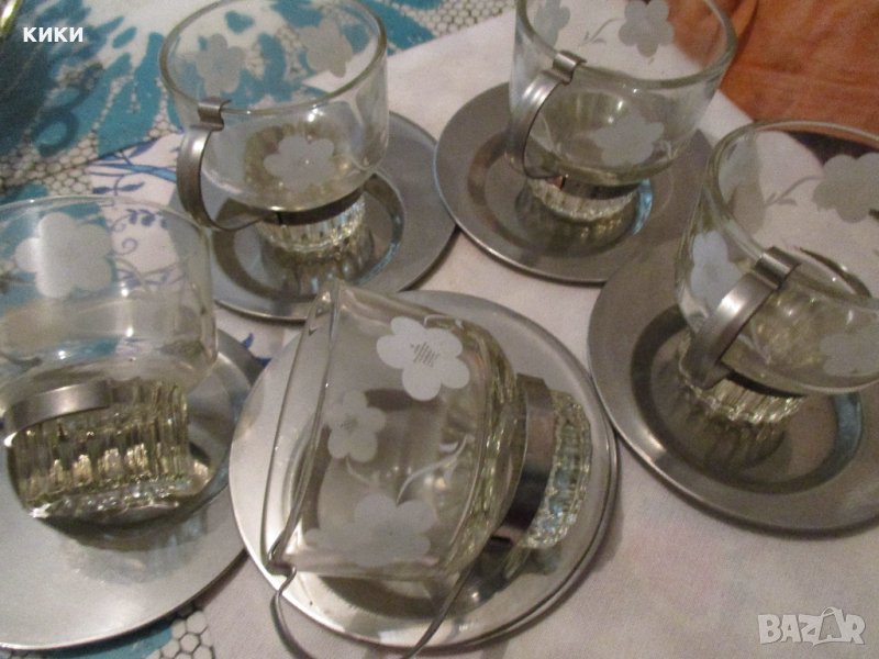 Чаши за кафе с метални чинийки сребристи -10 лв