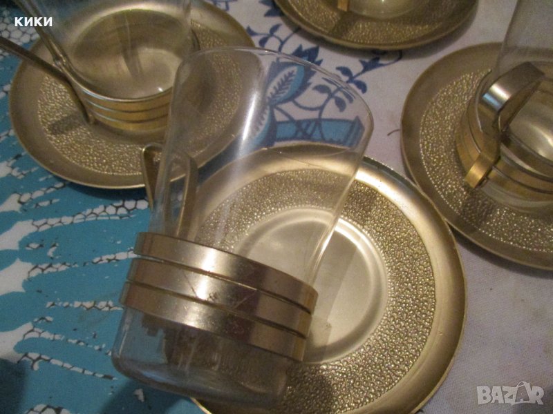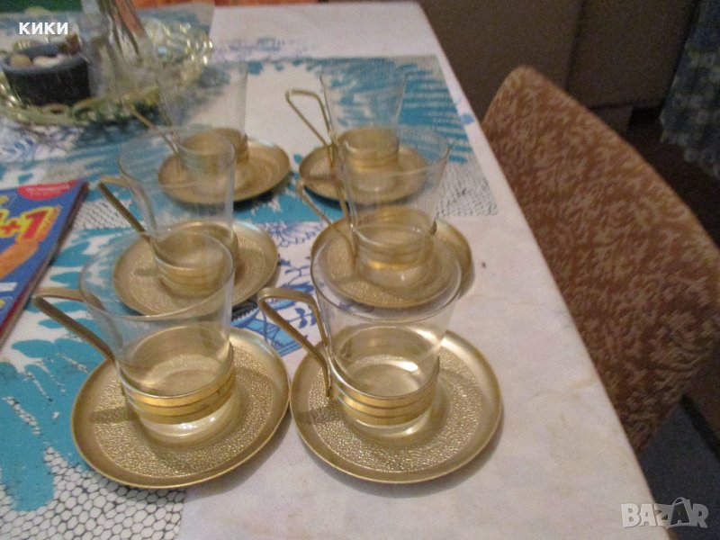 Чаши за чай руски с метални чиниики златисти - 20 лв 12 части