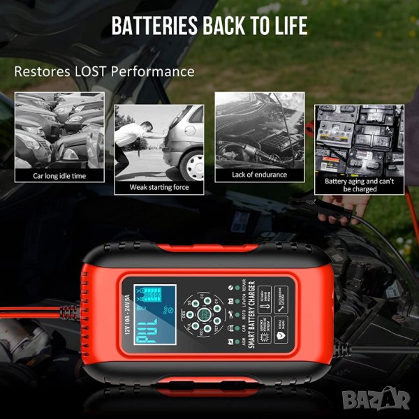 Зарядното устройство разполага с LCD дисплей, както и с функция за десулфатизация на сулфатизиран акумулатор, което може да вдъхне "нов живот" на вече "отписан" акумулатор.