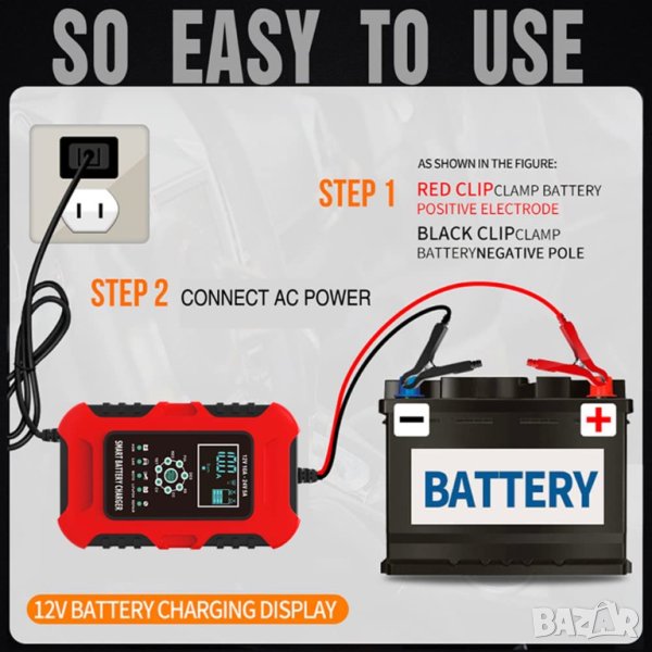 ЗАРЯДНО ЗА АКУМУЛАТОР, УМНО, ИМПУЛСНО, 12V 10A, 24V 5A, ЗА КОЛА, ТЯГОВ, AGM, GEL, VRLA, СТАРТОВ, UPS