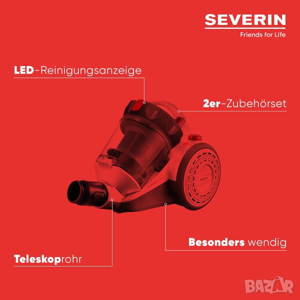 SEVERIN S'POWER с кабел, включително паркет, тапицерия и дюза за цепнатини и резервен предмоторен филтър, капацитет 1 L