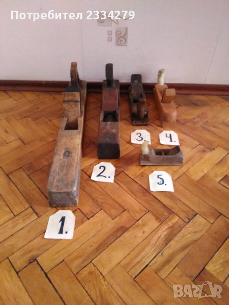 100% автентични дървени рендета, ръчно изработени през 19век. N:1 с дължина 63см.,цена: 15€.; N:2 с дължина 43см. има много имена и инициали на майстори и поръчители, Англия цена: 13€.; N:3 дължина 25см., цена:5€.; N:5 голямо с размер 25см.,цена: 8€.; N:5 размер 14см.,цена 5€.