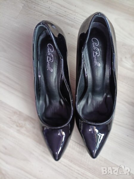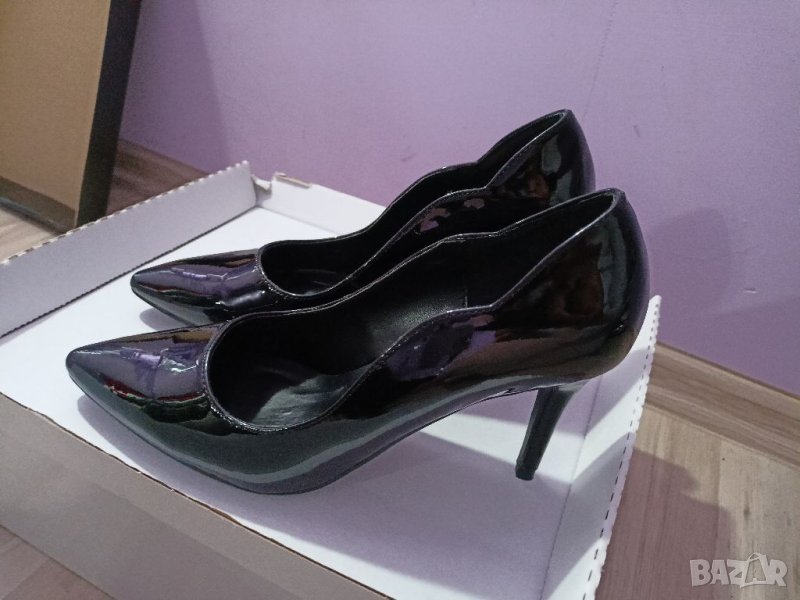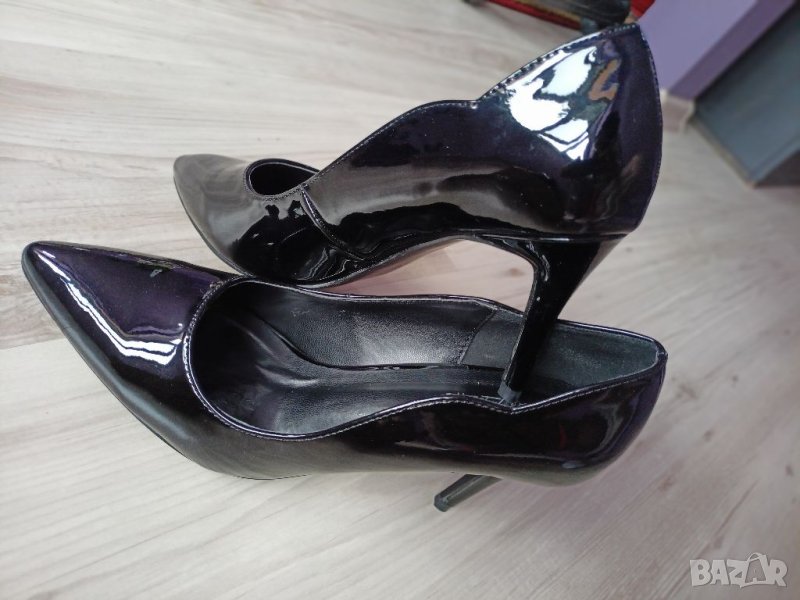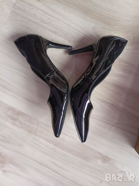 Нови елегантни обувки на висок ток,лачени , интесна странична извивка.