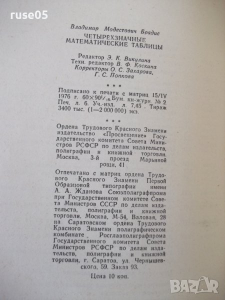 Книга "Четырехзначные математические таблицы-В.Брадис"-96стр → Обява 40696124