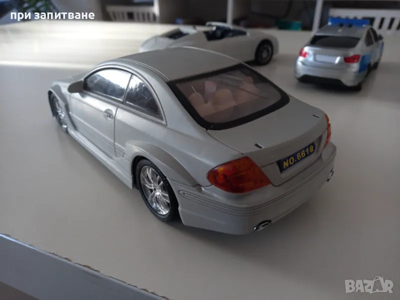 Имитацията на Mercedes E coupe е 26 см. дълга/ 11 см. широка. Има фрикционен механизъм на задните гуми. спукано задно стъкло. Много красива имитация- може да се доработи. Цена 12 лв.