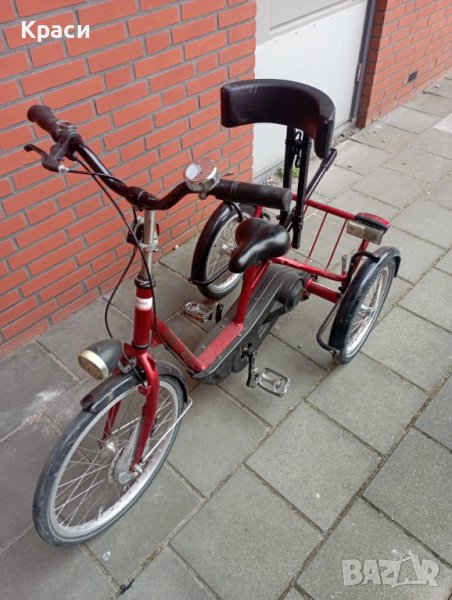 Много хубава триколка марка Huka.3ри скорости, спирачка за застрояване, предна ръчна спирачка,задна спирачка с контра,педалите могат да се регулират, работещо осветление,опора за гърба.(забежка на калниците )