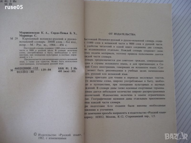 Книга"Испанско-русск.русско-исп.словарь-К.Марцишевская"-452с → Обява 40697376