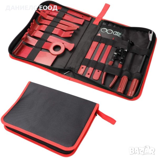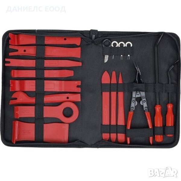 Комплект от 19 инструмента за демонтаж без повреди на декоративни части, пластмасови щипки, капаци, стъкла за огледало за обратно виждане и др.