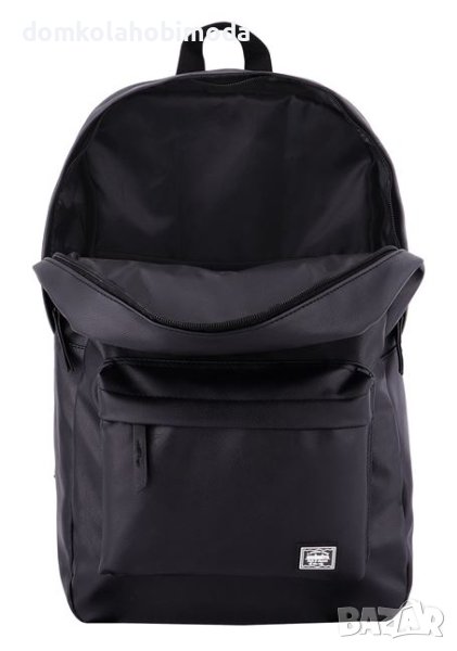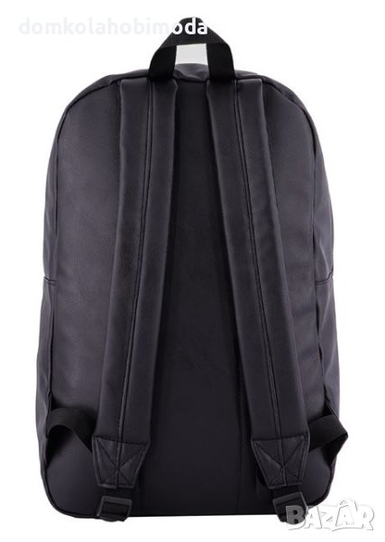 Черна кожена раница , Качествена еко кожа,Отделение за лаптоп.30х12х46 см