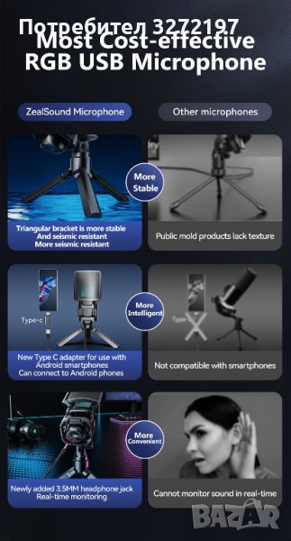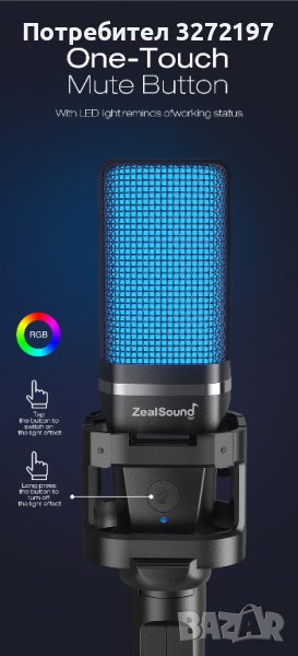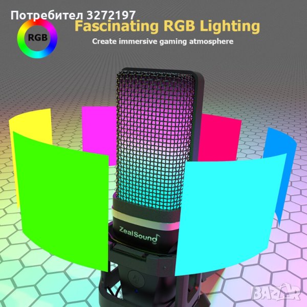 Zealsound RGB USB,професионален,кондензаторен микрофон е най-рентабилният RGB USB кондензаторен микрофон за игри.