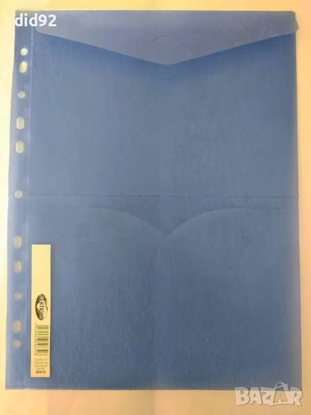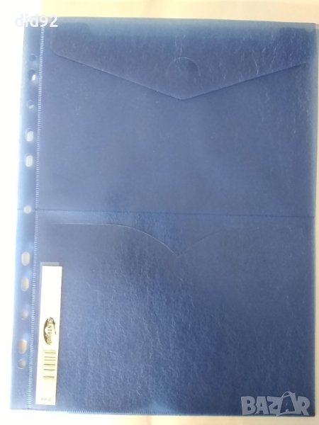 3. Папка PVC с перфорация гланц тъмносин / снимки № 9 и 10 /. Производство на CENTRUM - Германия. Папката е с размери : височина - 30 см. , ширина - 23 см. Папката има два по малки джоба в които се поставят документите . Те са с размери : височина - 14 см., ширина - 20 см Изработени са от дебел и плътен найлон. Налични - 10 бр. Цвят: тъмносин . Цена - 1.50 лв. /бр.
