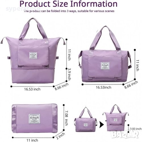 Сгъваема чанта с голям капацитет за ръчен багаж при пътуване, за уикенд екскурзия, за фитнес и пазаруване. Най-практичният аксесоар в ежедневието ви!