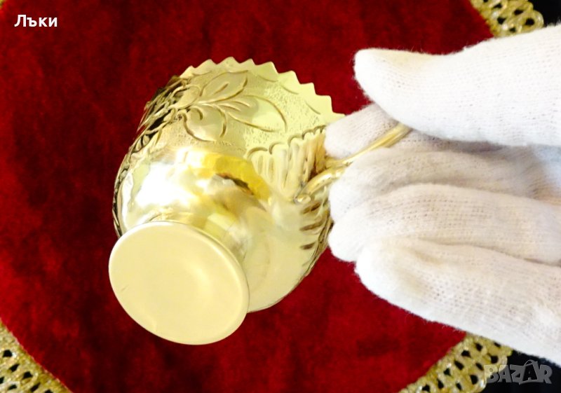 релефно ковани цветя,орнаменти и нежна извита дръжка.Височина 6 см.,диаметър 6 см.,тегло