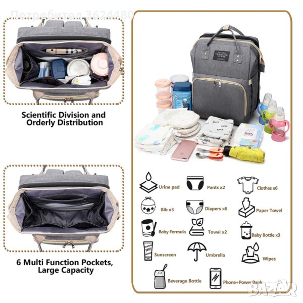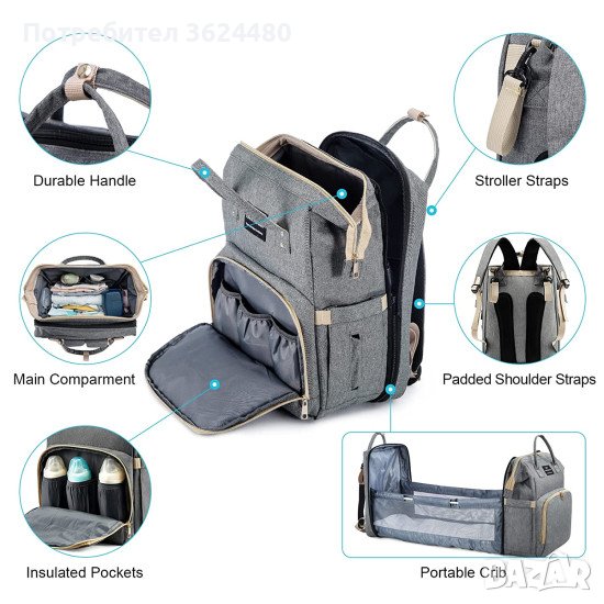 Раница за бебешки аксесоари с повивалник → Обява 40701152