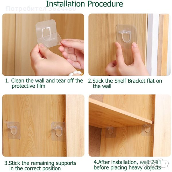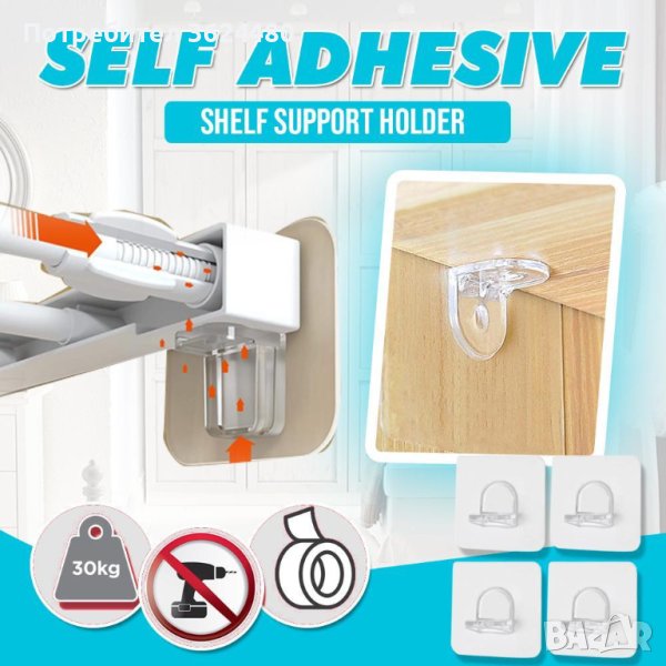 Лепящи държачи монтаж и укрепване на рафтове - комплект 4 броя