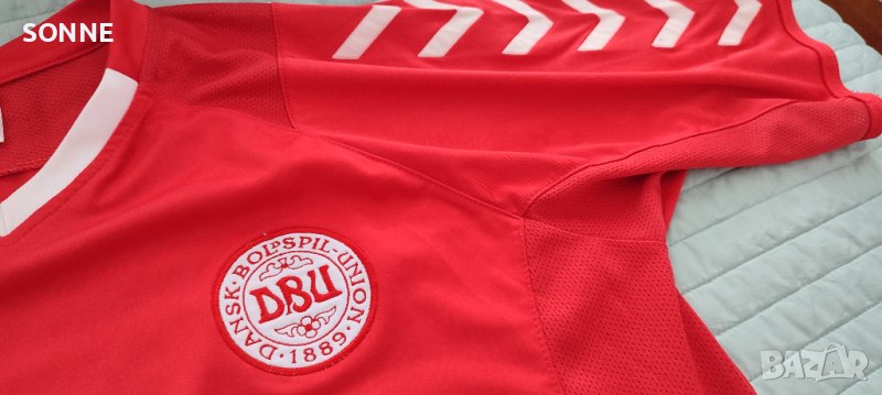 Предлагам оригинален екип на Национален отбор по футбол на Дания. Както е видно от снимките в отлично състояние. Здрав, стегнат с наситен цвят. Носена 1-2 пъти, но пазен. Минат на химическо чистене!