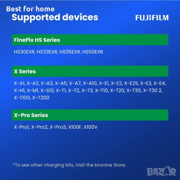 СЪВМЕСТИМОСТ С 10 МАРКИ - Зарядното устройство за фотоапарат с различни марки е съвместимо с 10 марки с над 200 модела