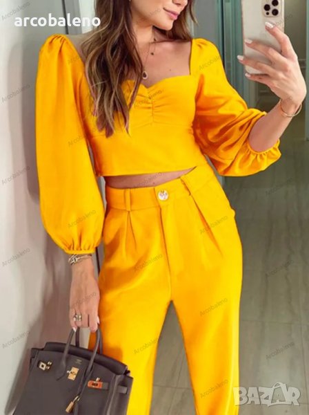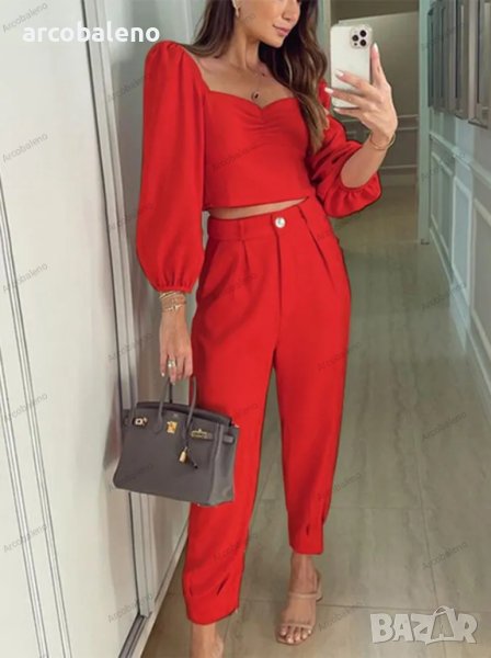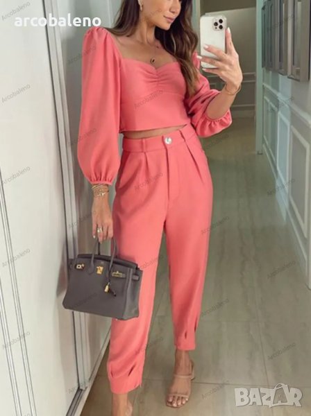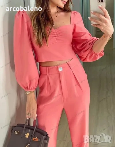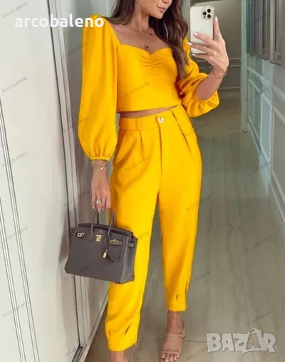 Дамски комплект от две части с висока талия и квадратно деколте, 4цвята