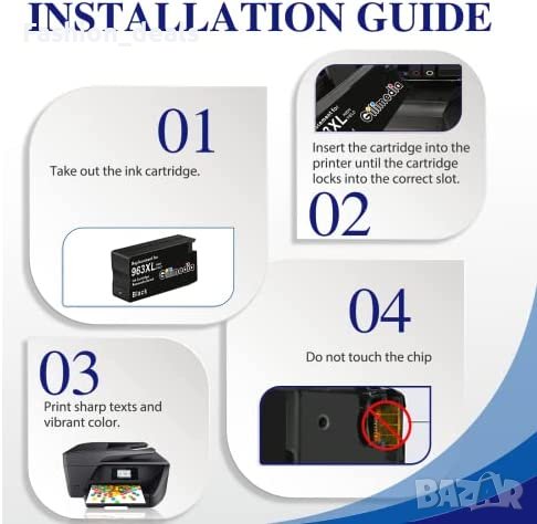 Съвместим с принтерите HP Officejet Pro 9010, 9020, 9025, 9015, 9022, 9012, 9014, 9019, 9013, 9016, 9018 (не е приложим при принтери 9012e, 9014e, 9015e, 9018e, 9022e, 9025e и активирани услуги HP+)