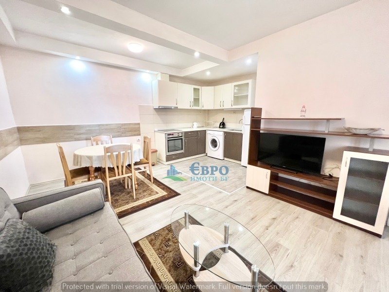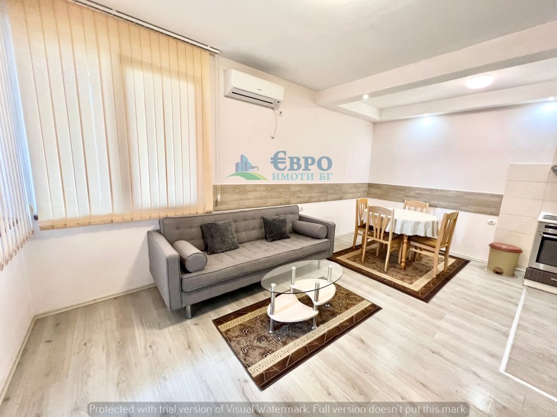 ДВУСТАЕН, ОБЗАВЕДЕН апартамент в много добро състояние с ЛОКАЦИЯ: над Сити център, близо до АЯЗМОТО. ВСЕКИДНЕВНА с вградена кухня с уреди, климатик и излаз към тераса, СПАЛНЯ, оборудвана с двойно легло, БАНЯ с WC, антре и тераса. Кухненски бокс, оборудван с вградени електроуреди: фурна с котлони на керамичен плот, хладилник, пералня, аспиратор. Сградата е НОВО СТРОИТЕЛСТВО с луксозни общи части и регулиран достъп. ПЪЛНА ИНФОРМАЦИЯ на тел: 0895625545, 0898778349 и в офис на ул. Христо Ботев 106 - партер (моля, предупредете за идването си на посочен телефон, всички срещи с клиенти са организирани в график)