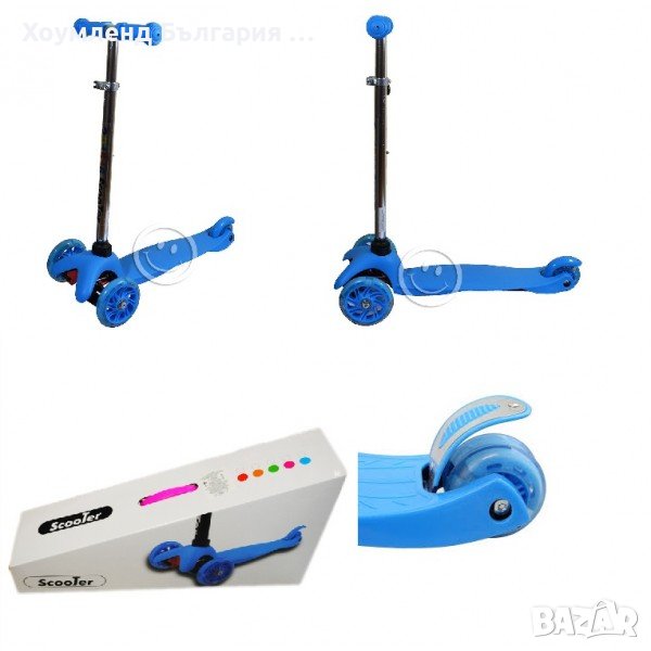 Тротинетка скутер - триколка със светещи колела. Идеална за разходки на открито, състезания с приятели и безкрайно забавление придружено с разноцветните светлини на светещите колела.